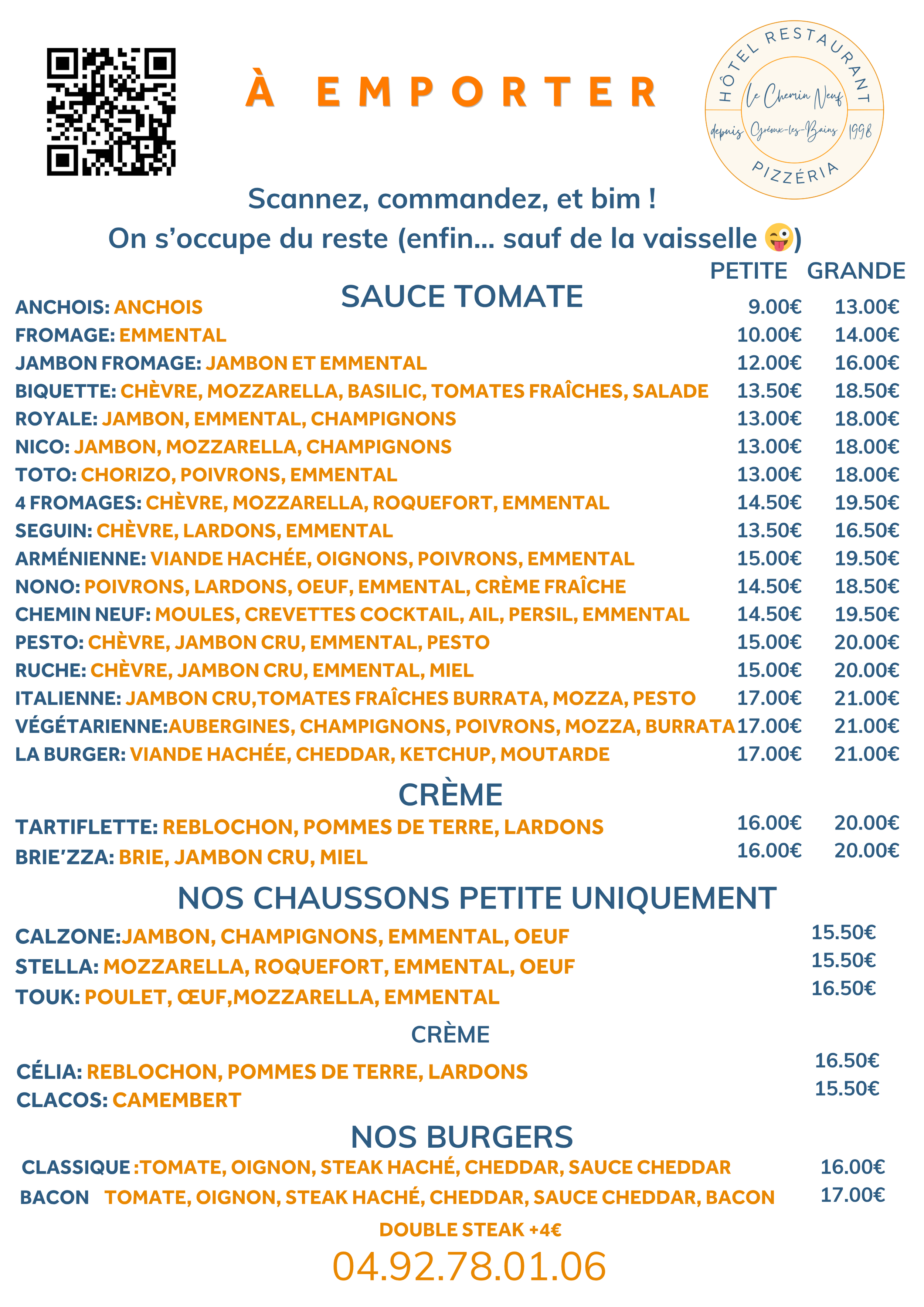 À Gréoux-les-Bains, entre une balade au bord du Verdon et une journée de soins aux thermes, il arrive qu'on ait simplement envie de bien manger sans s'attarder à table. C'est pour ça que Le Chemin Neuf propose ses pizzas et ses burgers à emporter.